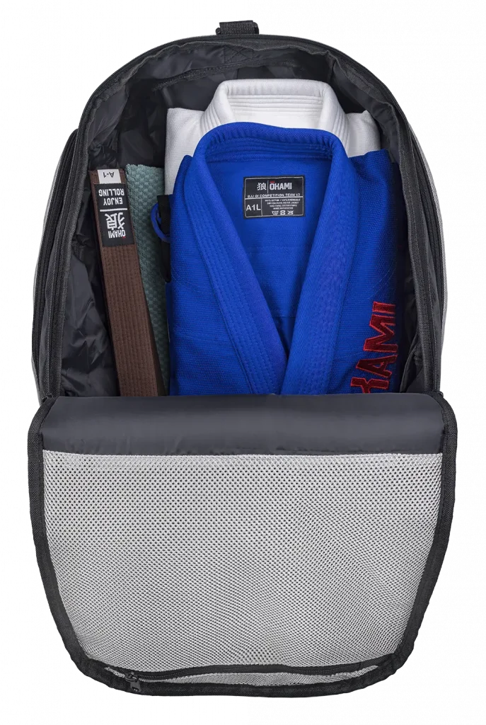 • Zweites Außenfach für BJJ-Gürtel oder Flip Flops inkl. zwei Mesh-Fächern für Kleinteile