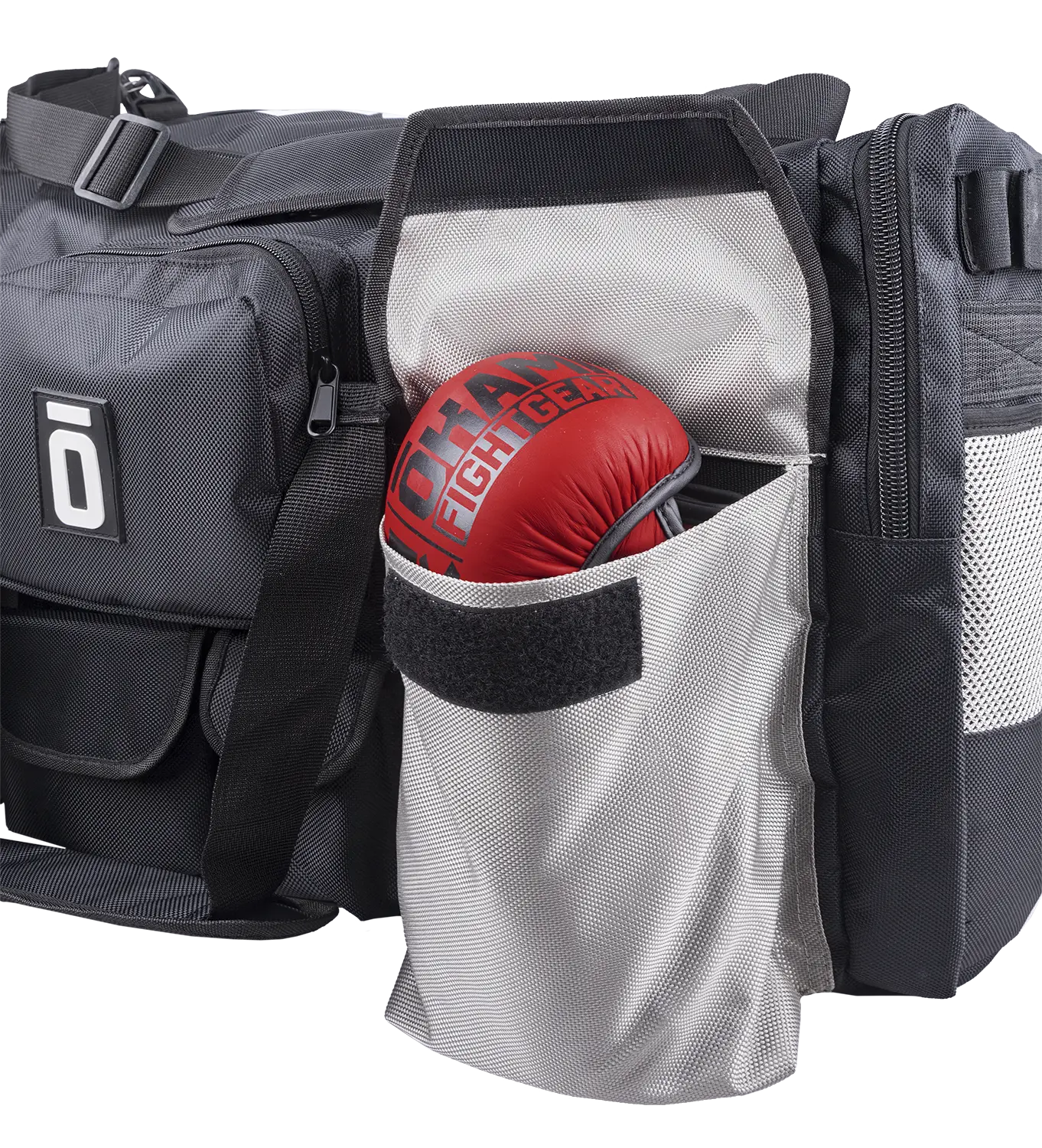 • ein großes Fach z. B. für MMA-Handschuhe