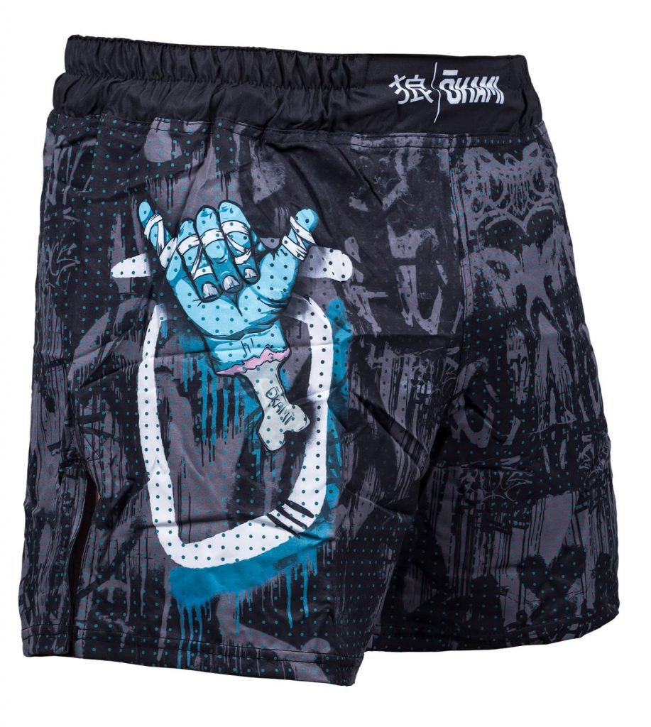OKAMI Fight Shorts Hang Loose, im Street Art Design, gehören zu einer neuen Generation Fight Shorts. Sie sind aus ultraleichtem Material gefertigt und dennoch robust und somit auch für MMA & Grappling geeignet. Wie unsere beliebten Fight Shorts Big Kanji, kommen Fight Shorts der neuen Cube Reihe ebenfalls ohne Klettverschluss. Sie sind mit einem elastischen Bund, mit innenliegender Schnürung ausgerüstet. Das erhöht den Tragekompfort der super leichten Shorts und schneidet beim Bodenkampf nicht am Bauch ein. Damit die Shorts auch bei intensiven Trainings nicht in Bewegung kommen kannst Du sie mit der innenliegenden Schnürung fest zurren. Die verstärkten Seitenschlitze sorgen für maximale Bewegungsfreiheit während des Trainings.