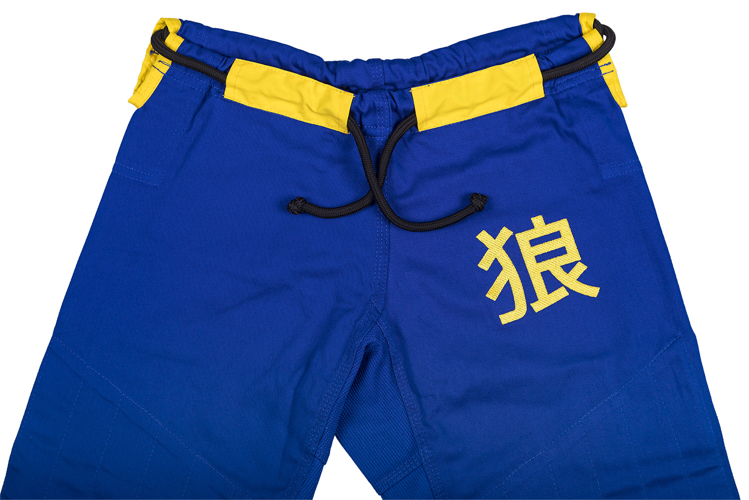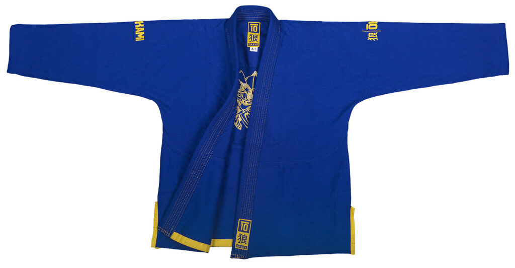 Back to the roots kommen Kensho Gis auf den ersten Blick eher unauffällig daher. Die aufgestickten japanischen Elemente und Nähte in gelb setzen punktuelle Akzente auf dem ansonsten blau gehaltenen Gi. Die ultralight Gi-Jacke wird aus Baumwolle in Pearl Weave Webung hergestellt und ist entsprechend leicht und trotzdem robust. Die Ärmel und der Rücken der Jacke sind aus einem Stück gefertigt. Alle Stresspunkte sowie der Kragen wurden zusätzlich verstärkt. Der Kniebereich der Hosen aus Twill Cotton ist im Bereich oberhalb der Knie bis zur Mitte des Schienbeines gedoppelt. Der gedoppelte Bereich der Hose wird durch eine innovative schräge Nahtführung zusätzlich verstärkt. Das Ergebniss ist eine Hose die den Belastungen im Trainingsalltag noch länger stand hält.