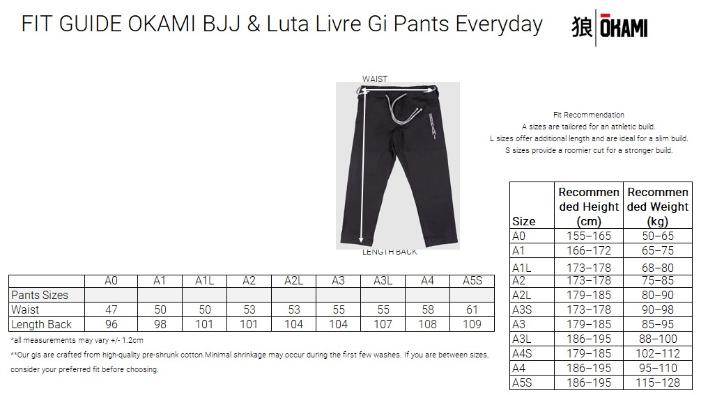 The OKAMI *Everyday* Gi Pants are designed for versatility – ideal for daily BJJ training or Luta Livre. Clean and durable, these pants are made to perform without drawing attention. Easy to pair, easy to trust – wherever you roll.