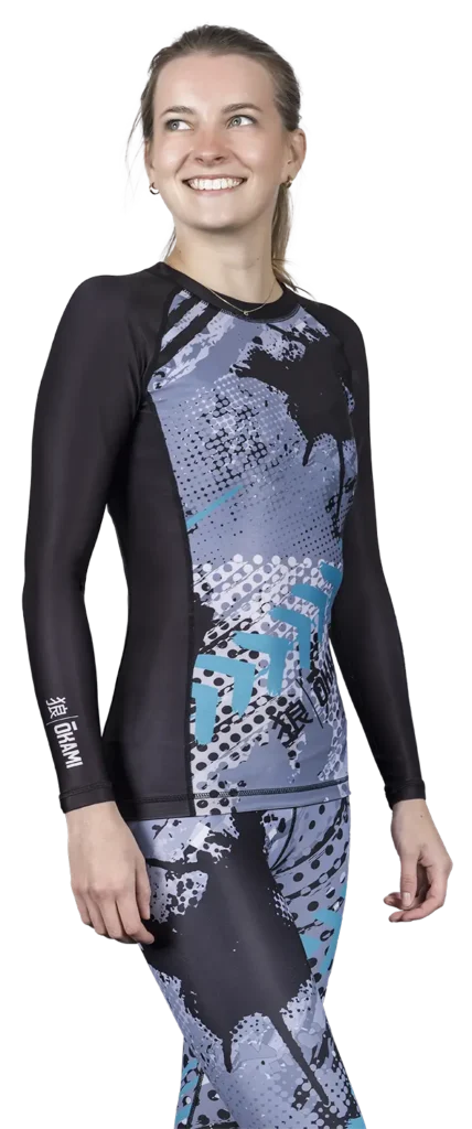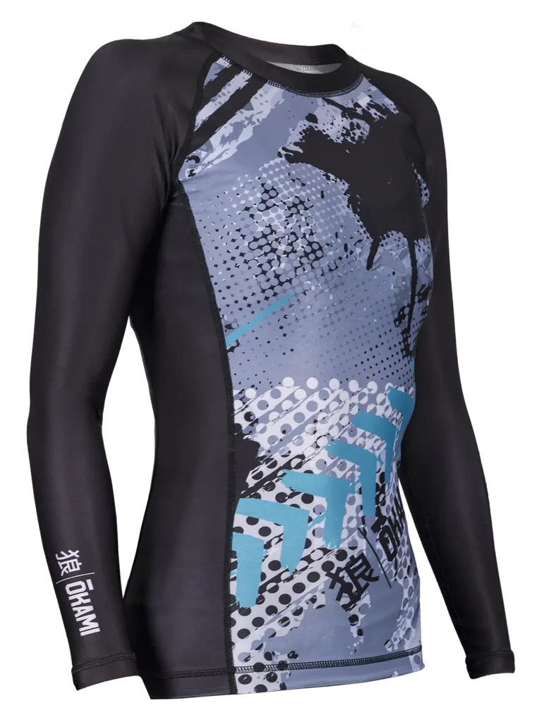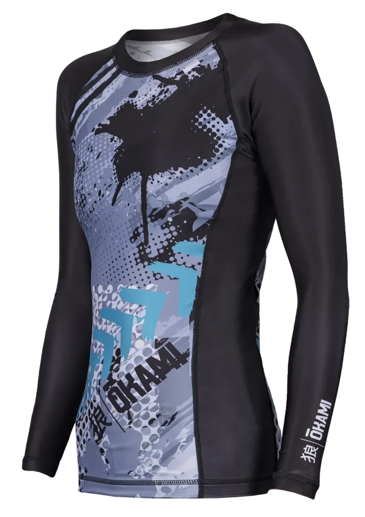 Das OKAMI Damen Langarm Rashguard “Shadow” bietet perfekten Schutz und Komfort für anspruchsvolle Trainingseinheiten. Hergestellt aus einem robusten Materialmix von 87% Polyester und 13% Elasthan, garantiert dieses Rashguard Flexibilität, Haltbarkeit und volle Bewegungsfreiheit.