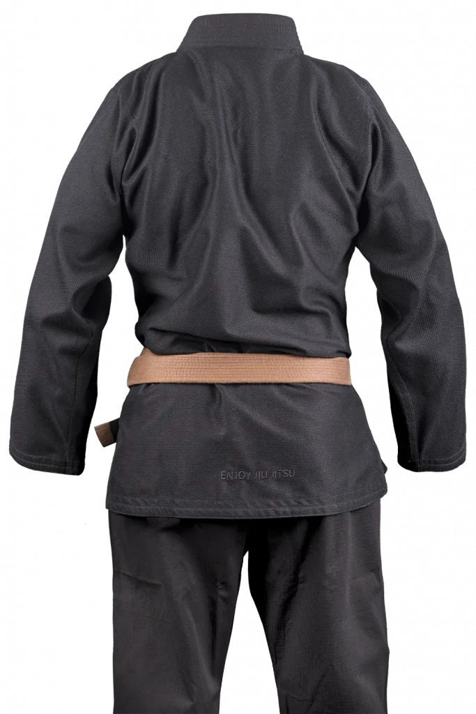 Das minimalistische Design wird durch dezente OKAMI-Stickereien in Gi-Farbe auf der Schulter und Hose ergänzt. Besonders auffällig sind die Schnürung mit OKAMI-Logos und der ENJOY JIU JITSU Stick auf der Rückseite der Jacke. Der Gi wird plastikfrei in einem praktischen Gymsack geliefert und beinhaltet einen kostenlosen weißen Gürtel – ein nachhaltiges und komplettes Paket.