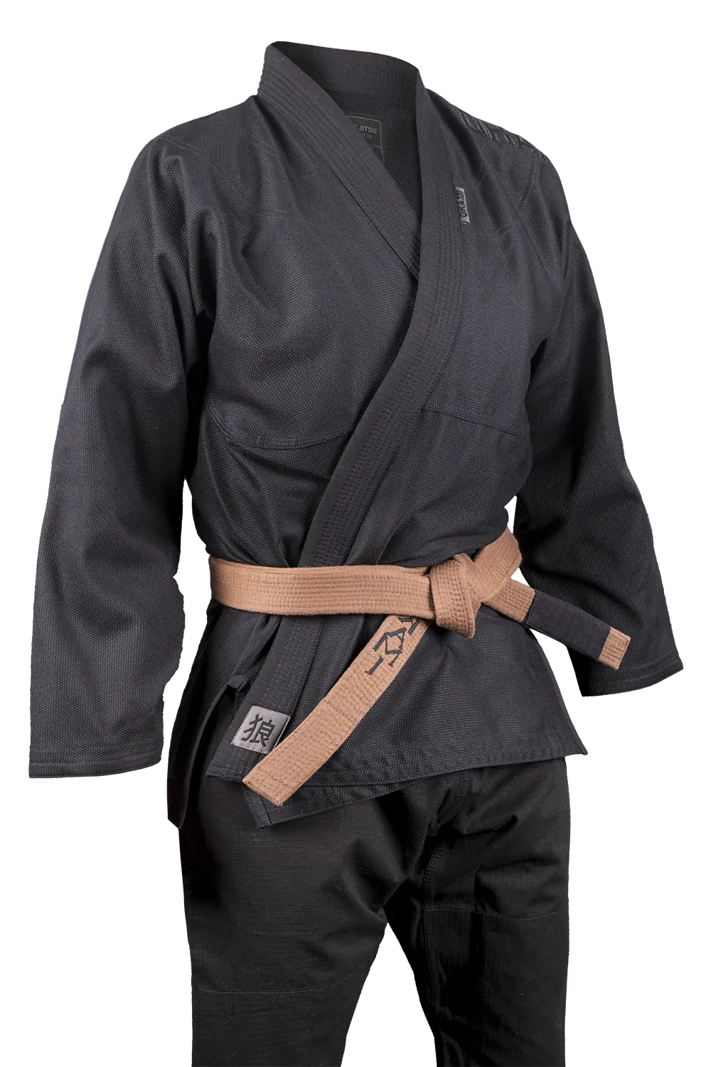 • Minimalistisches Design: Dezente OKAMI-Stickereien in Gi-Farbe auf Schulter und Hose.