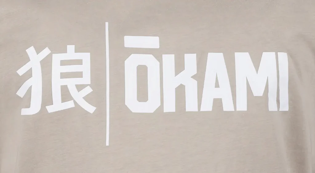 • OKAMI-Hauptlogo und Kanji-Symbol als Print auf der Vorderseite.