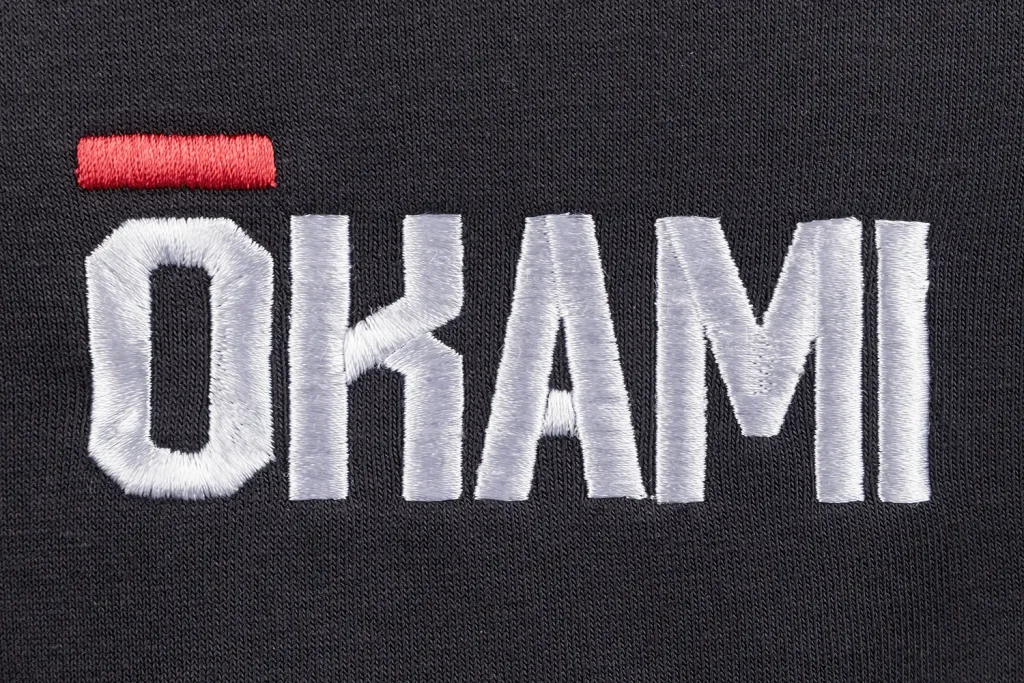 Das gestickte OKAMI-Logo auf der linken Brust und das auf die Kapuze aufgestickte Kanji-Symbol verleihen dem Hoodie einen einzigartigen und zugleich dezenten Look. Die locker geschnittene Kapuze rundet das Design ab und bietet zusätzlichen Komfort.